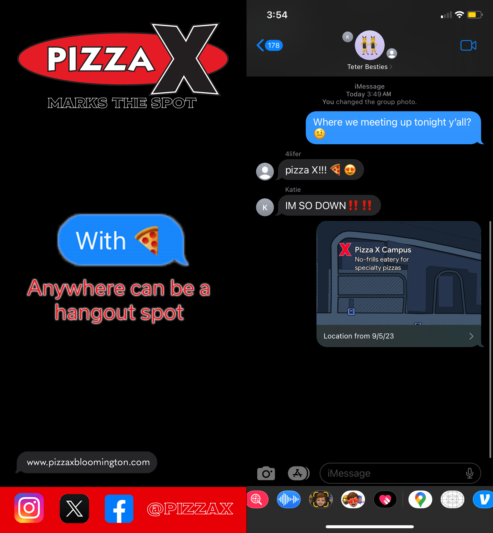 This campus Pizza X spot is a favorite among people of Indiana University. Students especially freshmen are always looking for a hang out sport with their friends. Pizza X reminds them that with Pizza anywhere can be one.
